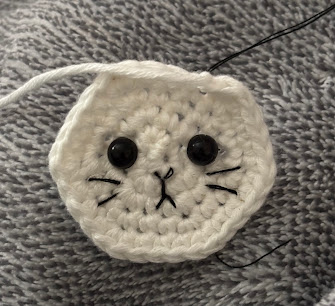 This mischievous kitty is 8cm wide and 9cm long using a 2.5mm hook and 4 ply yarn but you can make him bigger or smaller by changing your hook size and the yarn thickness.