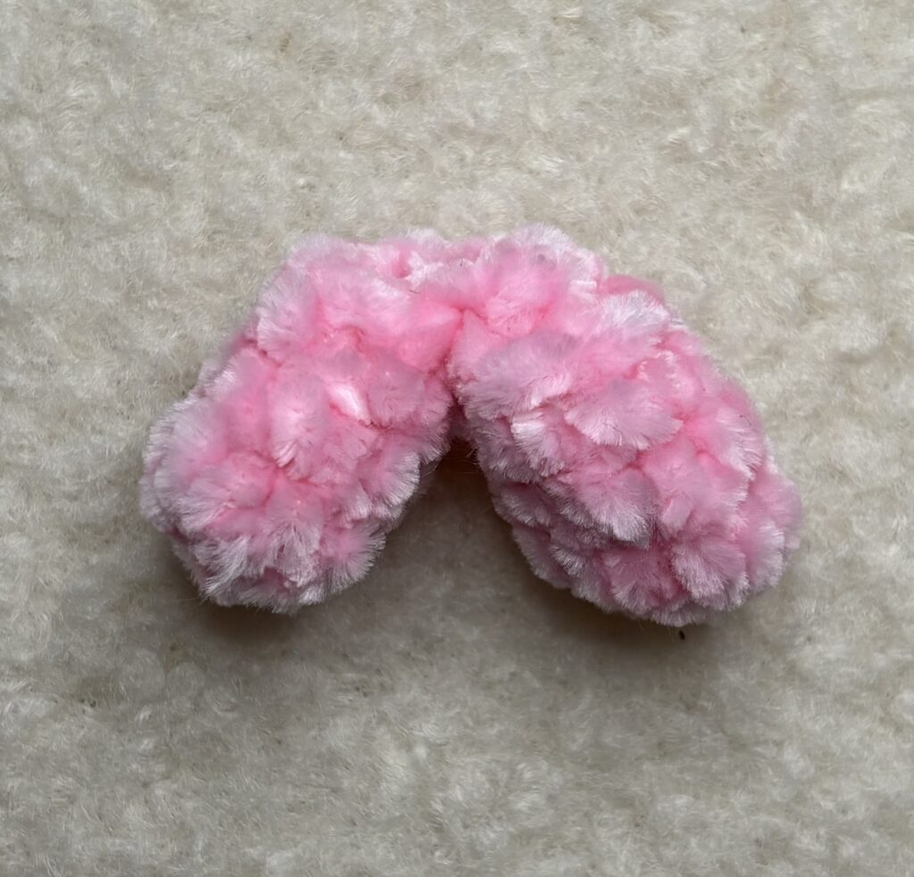 Take one pair of your legs and count 2 sc to the right from where you attached the legs together and attach pink yarn there.