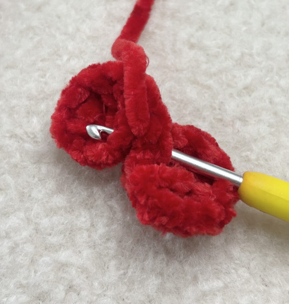 With red yarn, create a MC.